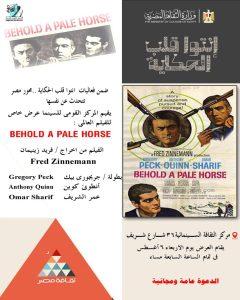 وينظم مركز الثقافة السينمائية التابع للمركز القومي للسينما برئاسة الدكتور أحمد صالح، أمسية سينمائية يوم الأربعاء الموافق 6 أغسطس، تتضمن عرضًا خاصًا لفيلم “Behold a Pale Horse” (إنتاج 1964) إلى جانب استعراض مشوار النجم العالمي عمر الشريف وموهبته الفريدة ورحلته نحو العالمية.