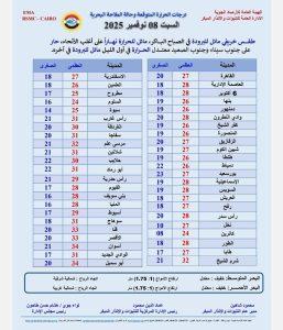 النشرة الجوية والظواهر الجوية وحالة الملاحة البحرية المتوقعة ليوم السبت 08 نوفمبر 2025.
