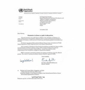 ووجَّه الدكتور تيدروس تهنئة خاصة إلى السيد الرئيس عبدالفتاح السيسي، وصف خلالها هذا الإنجاز بأنه «تاريخي ويُضاف إلى سجل مصر الحافل بخلوها من الأمراض» وقد تحقق من خلال استراتيجية وطنية شاملة، تضمنت: