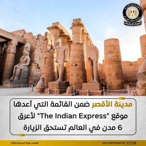 اختار موقع “The Indian Express” مدينة الأقصر ضمن القائمة التي أعدها لأعرق 6 مدن في العالم تستحق الزيارة، وذلك في تقريره الصادر تحت عنوان “أعرق 6 مدن في العالم تستحق الزيارة” .