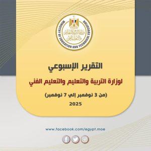 أصدر المركز الإعلامي لوزارة التربية والتعليم والتعليم الفني التقرير الأسبوعي للوزارة ويتضمن ما يلى :